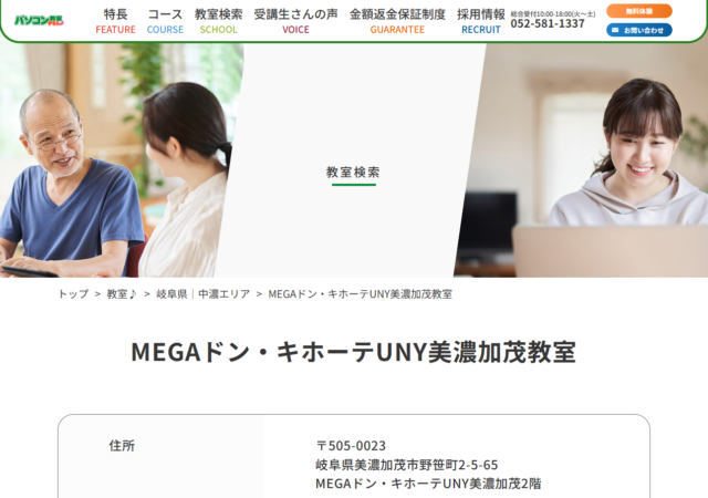 MEGAドン・キホーテUNY美濃加茂店2階にある、地域密着型のパソコン教室です。