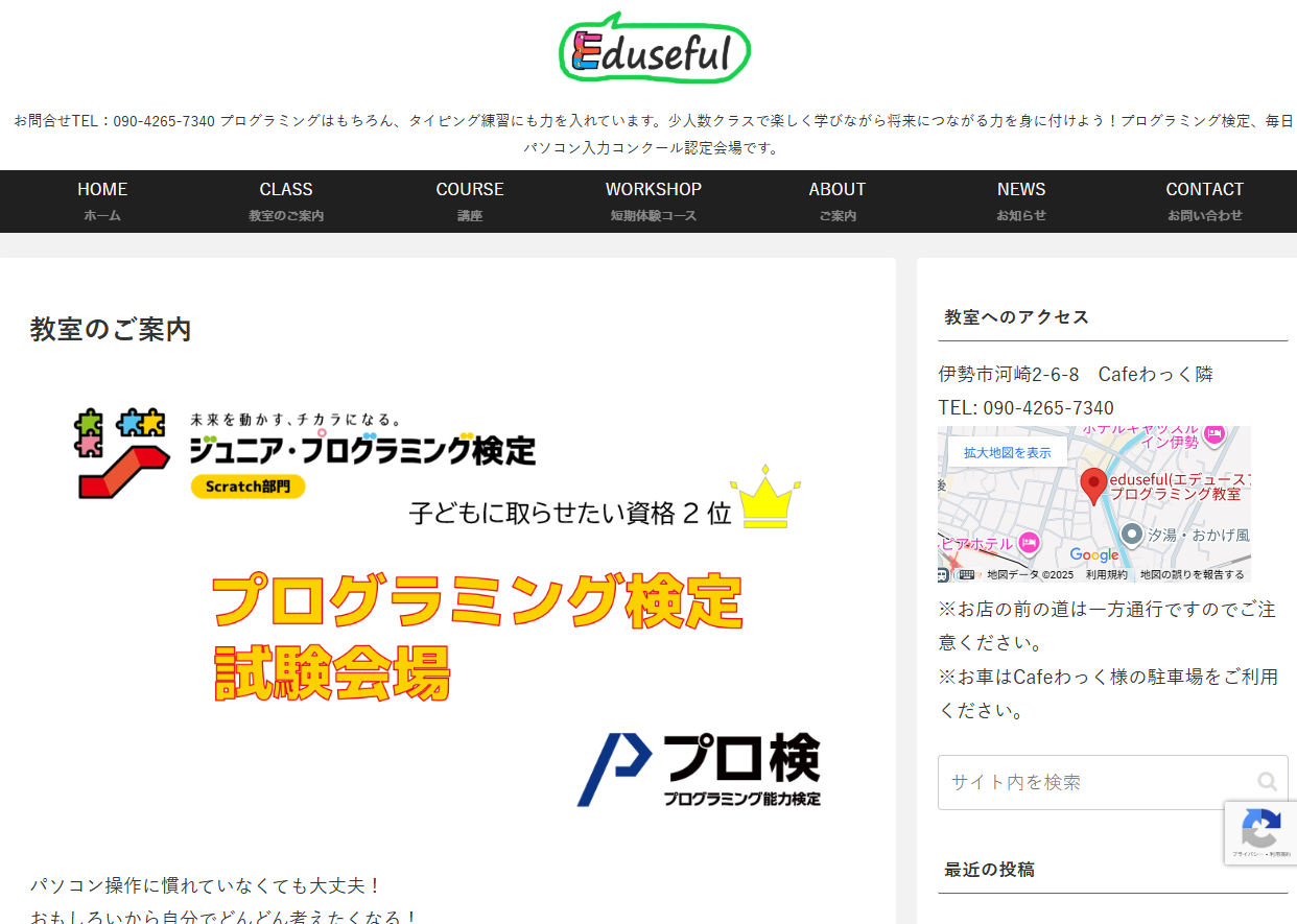 小学生以上を対象としたプログラミング教室です。タイピングにも力を入れていて、文字入力の速さ・正確さを競う文部科学省後援の「毎日パソコン入力コンクール」認定会場として、基礎操作を武器に変えるカリキュラムを取り入れています。